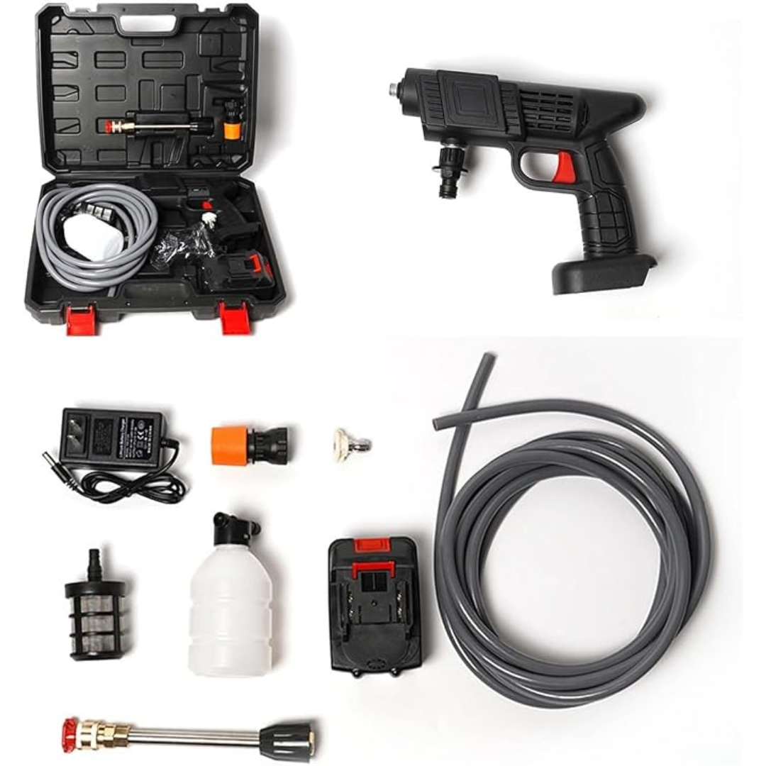 Con un motor potente de 1000W, convierte agua estancada en un chorro ultra potente capaz de eliminar suciedad difícil de cualquier superficie: coches, bicicletas, aceras, cerámicas, motos y más.