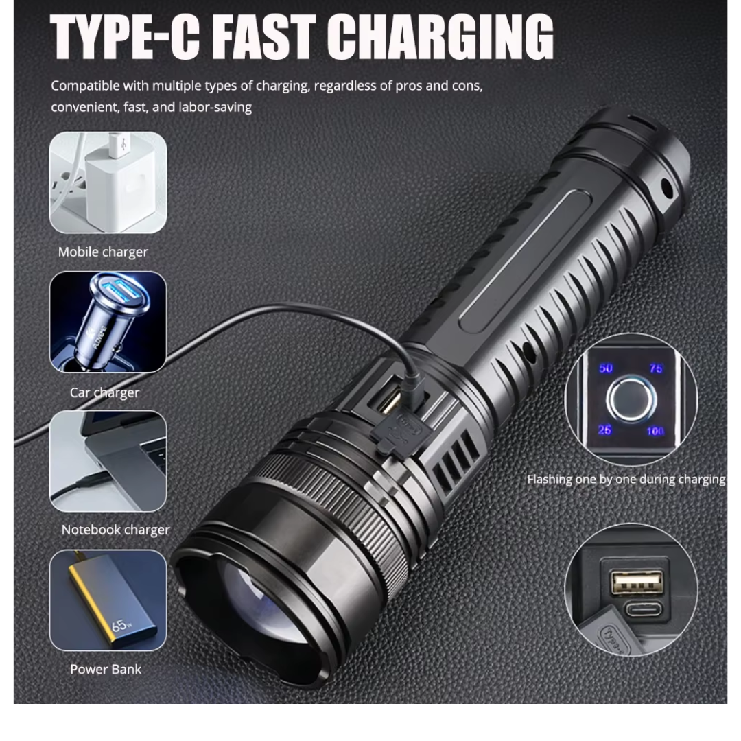 La Linterna LED Profesional de Gran Alcance es la opción definitiva para quienes buscan máximo brillo, durabilidad y versatilidad en una linterna compacta. Diseñada para actividades al aire libre, uso profesional y emergencias, te garantiza visibilidad total en cualquier situación.